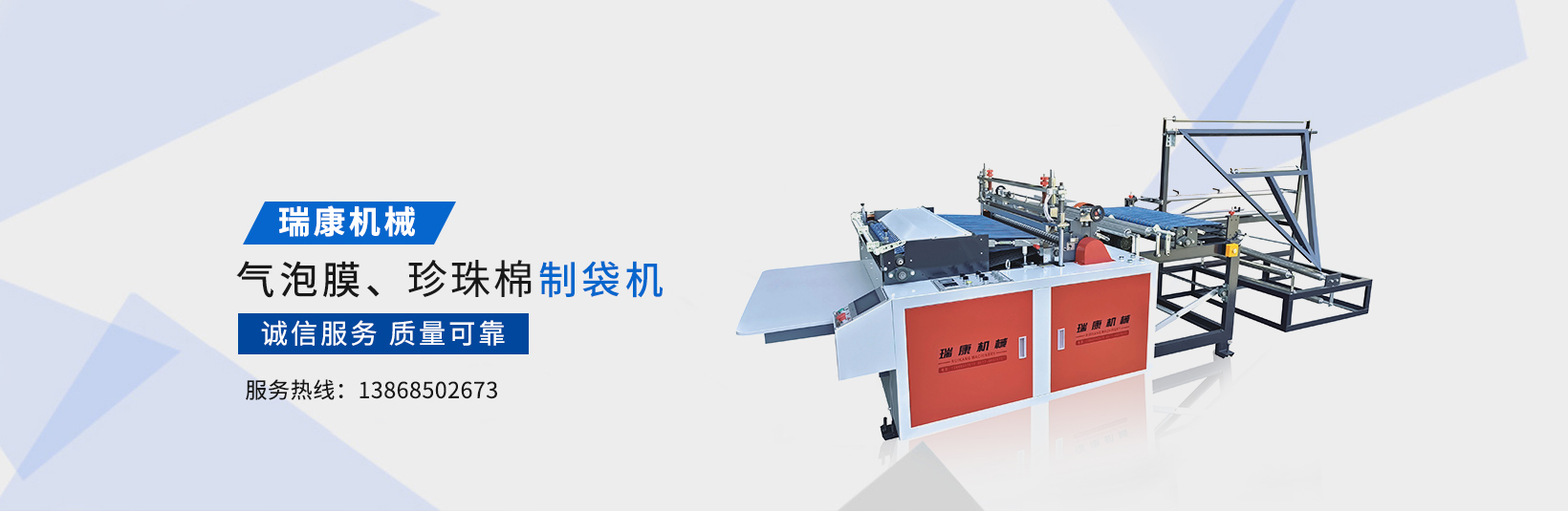 溫州瑞康機械有限公司(www_wzruikang_com.sphmm.cn)主要生產氣泡膜機,快遞袋制袋機,包裝機,制袋機等設備。瑞康機械是國內生產塑料軟包裝系列機械設備的專業廠家之一。產品質量可靠、誠信服務,深受用戶好評,市場占有率節節攀升。